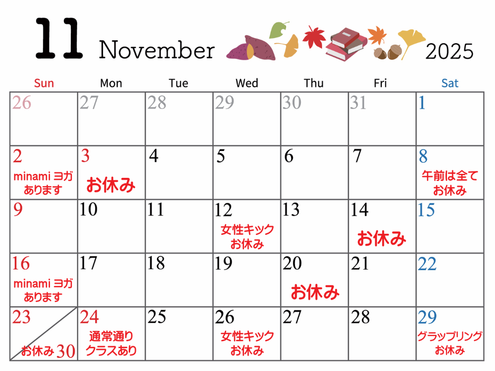 | 火曜日 20:00~21:00 | キックボクシング 参加費500円 |