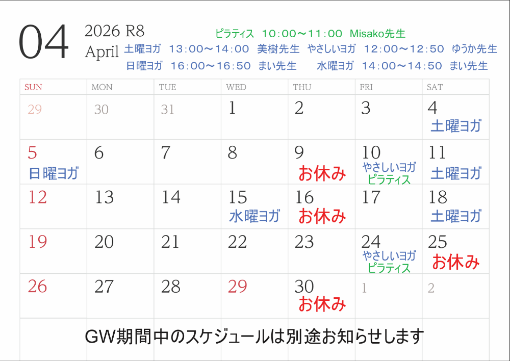 ・5日(日)日曜日ベーシックヨガ まい先生