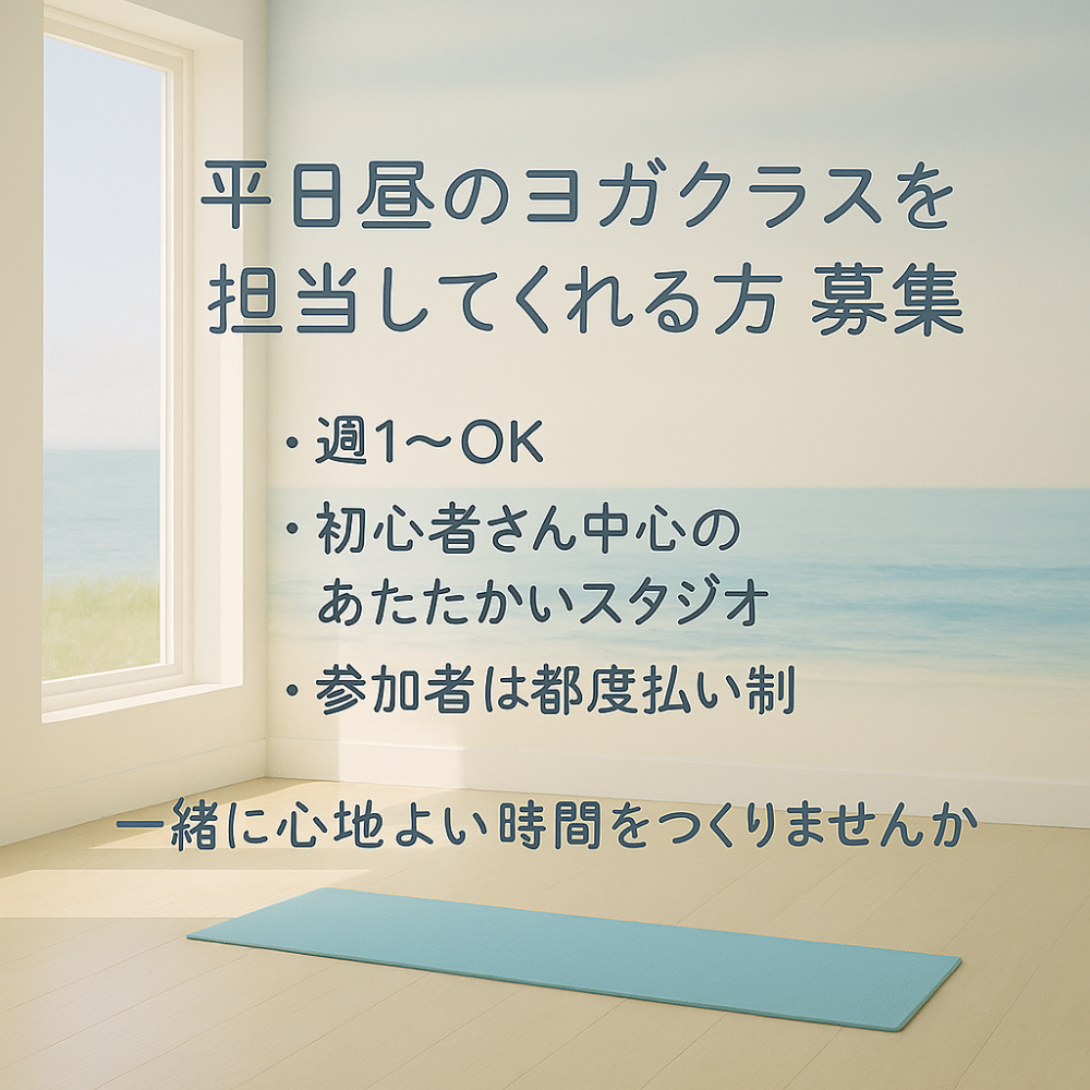 【平日昼のヨガクラスを担当してくれる方を募集します】